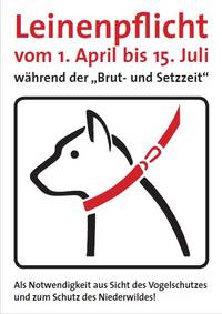 Leinenpflicht für Hunde im Wald und in der freien Natur während der Brut- und Setzzeit vom 1. April bis 15. Juli